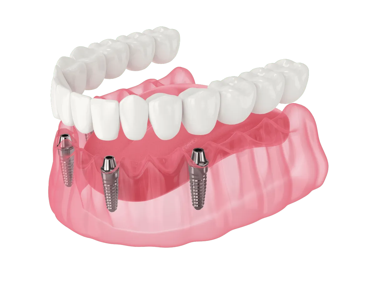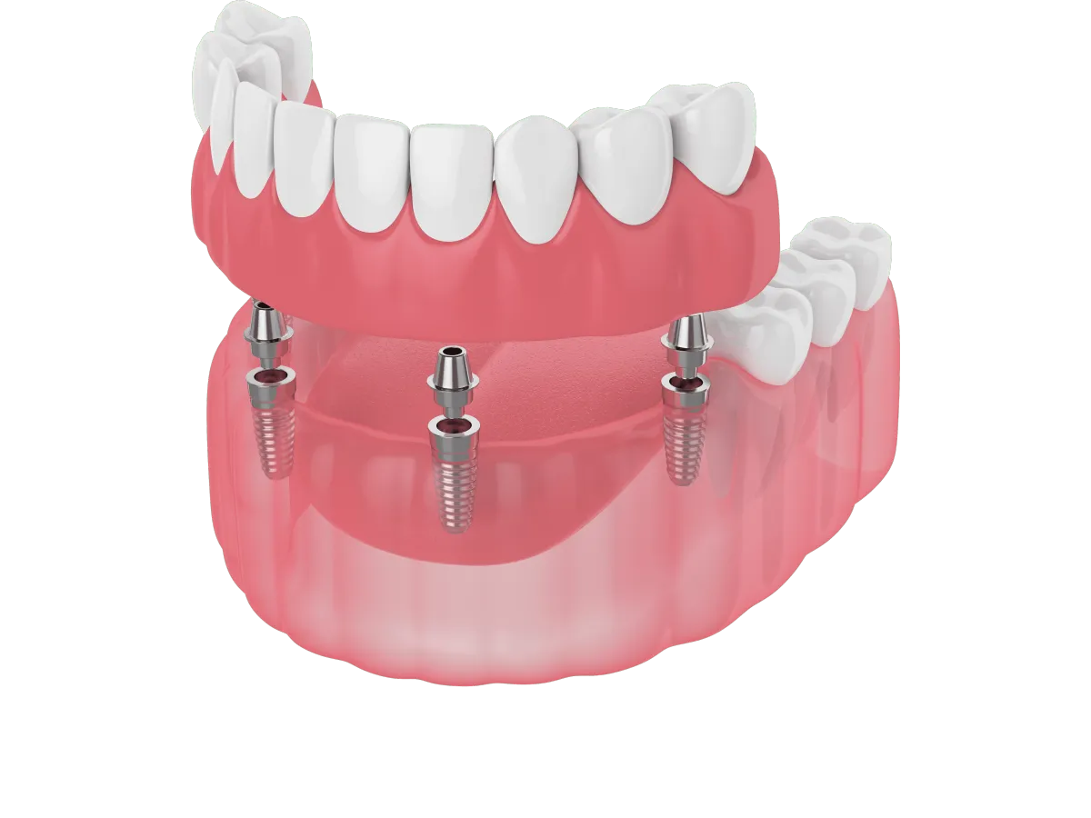 Replace several of your missing teeth with All-on-4 implants for a lower cost than using multiple single implants. All-on-4 implants use four implant anchors to support several connected crowns, allowing you to eat, speak, and live with confidence.